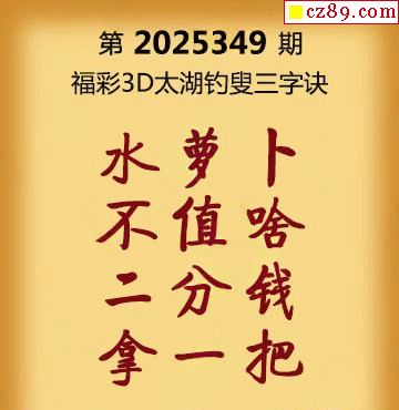 25年349期3d字谜太湖钓叟三字诀《保真》
