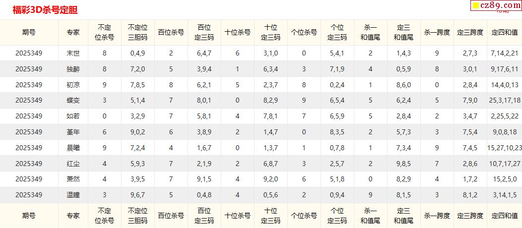 349期彩票专家福彩3D定位杀胆推荐图表
