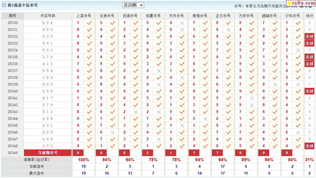 25年349期澳客专家体彩P3杀号定码推荐
