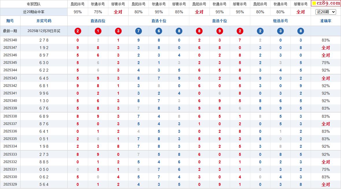 25年349期彩宝贝专家福彩3D杀号定码图表