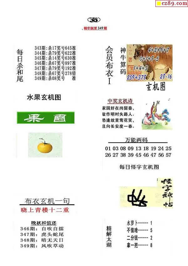 牛彩版3D字谜彩报图25年349期打印版