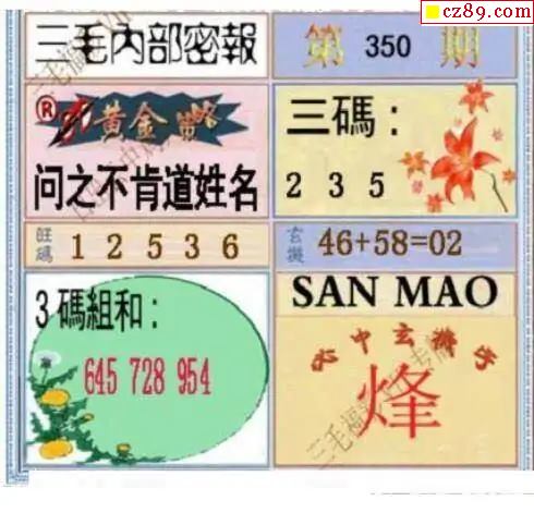 三毛图2025350期3d图谜