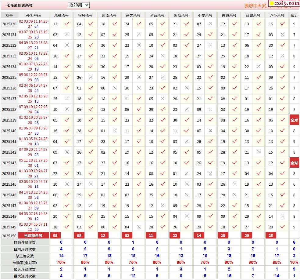 七乐彩150期 彩宝贝专家杀号码预测图表