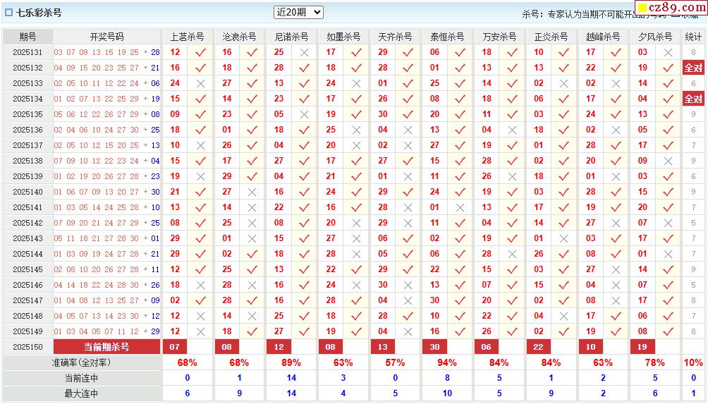 25年150期彩票专家福彩七乐彩杀号图表