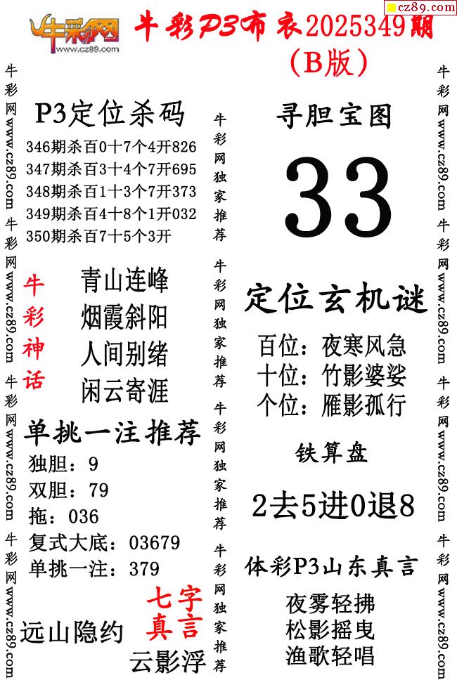 牛彩P3布衣25年350期AB版图谜(精华版)