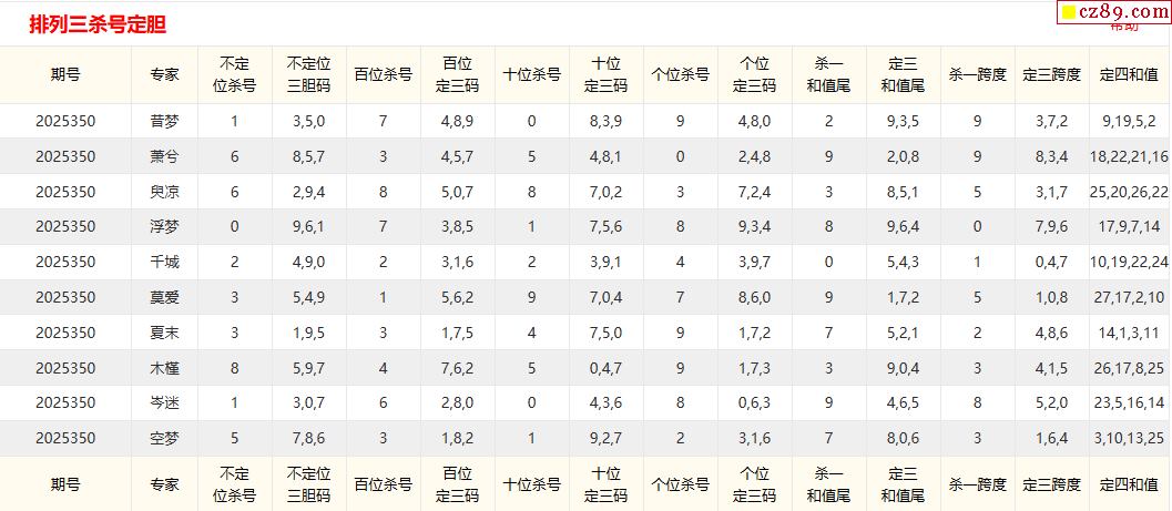 25年350期彩宝贝专家体彩P3杀号定码图表