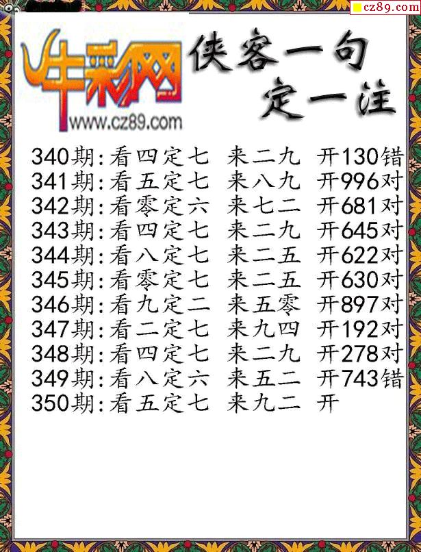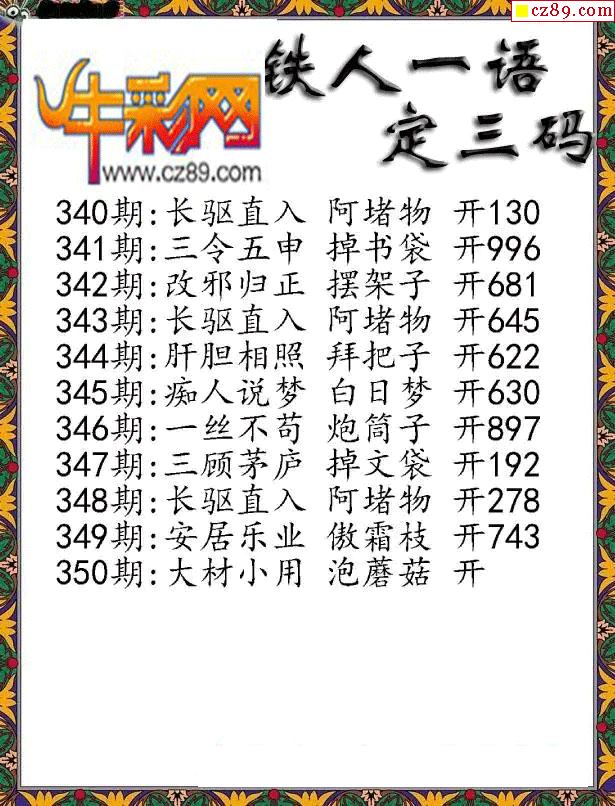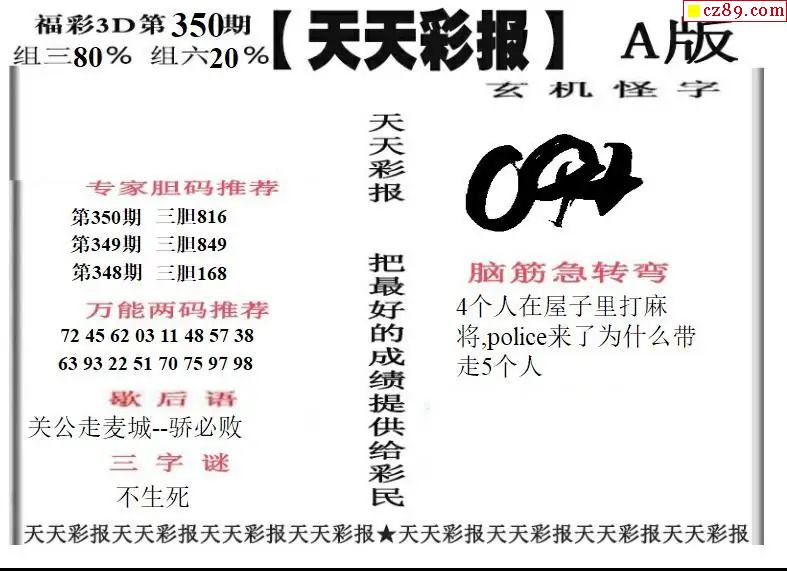 牛彩版3D字谜彩报图25年350期打印版