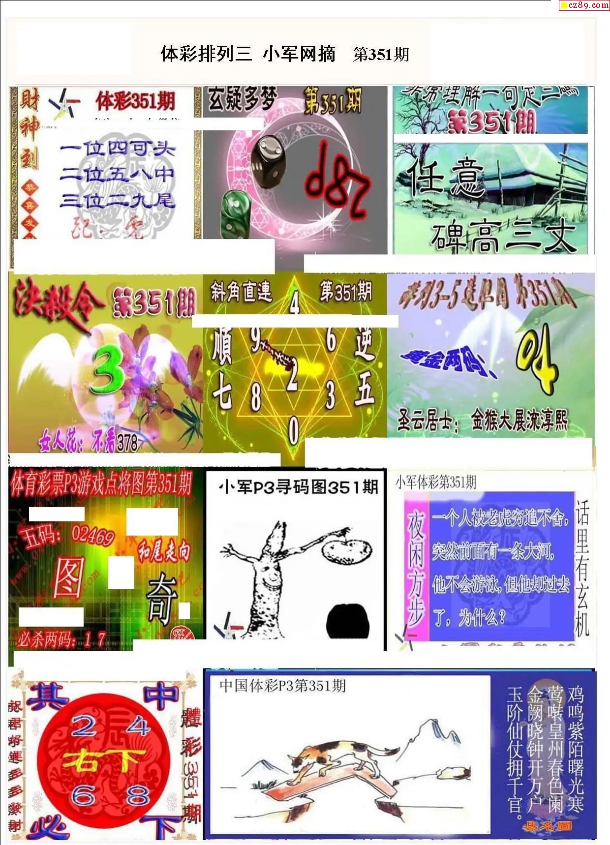 2025年351期牛彩网体彩P3画迷图谜汇总分享