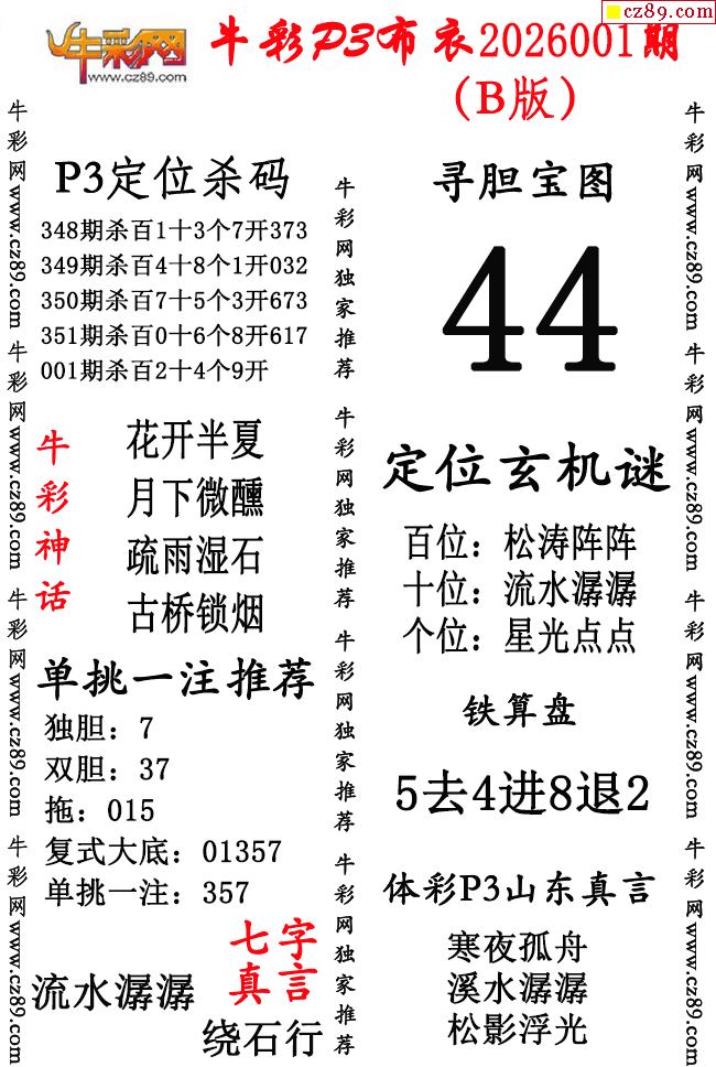 牛彩P3布衣26年001期AB版图谜(精华版)