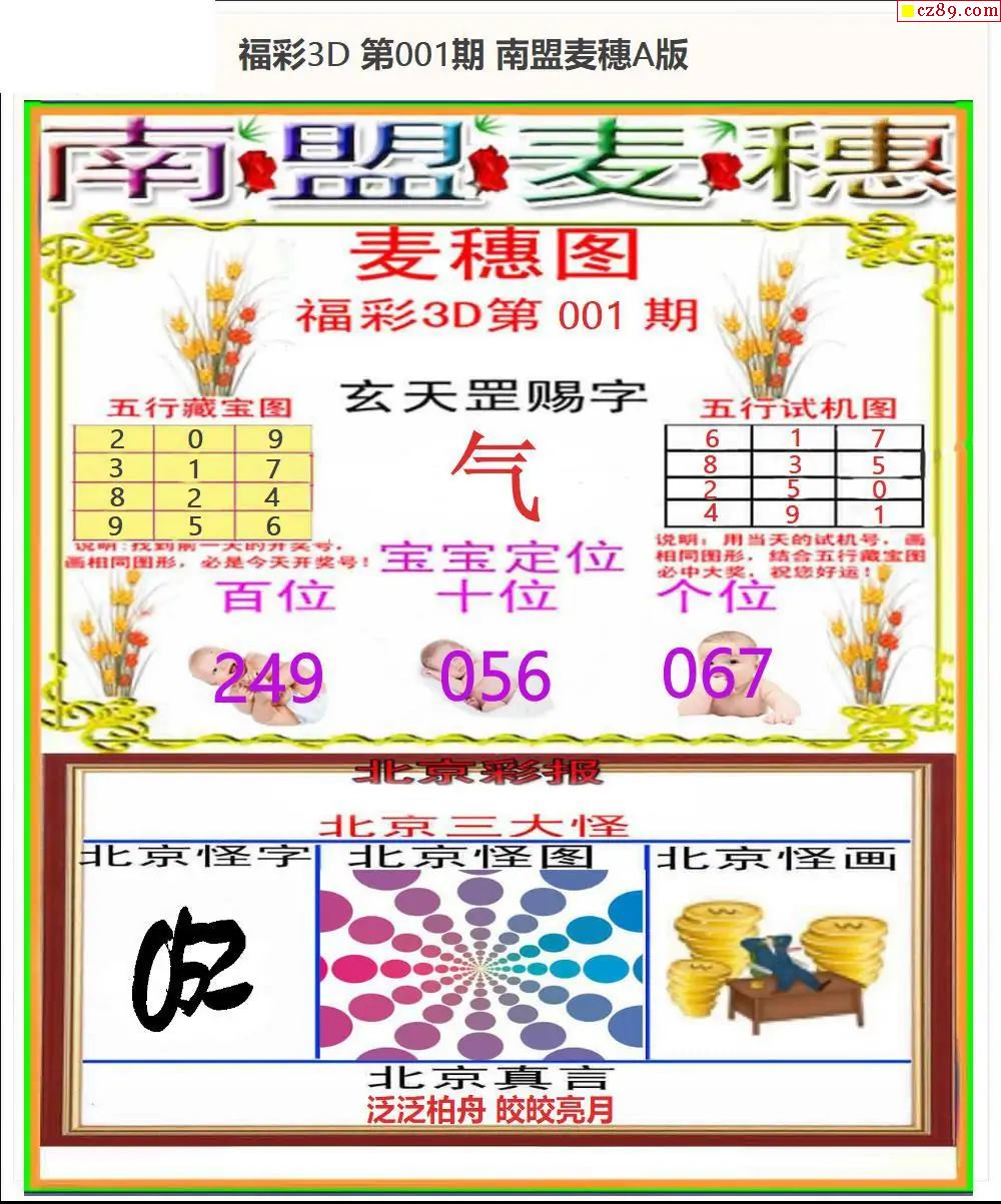 福彩3D2026001期南盟麦穗AB版+南盟扣号AB版