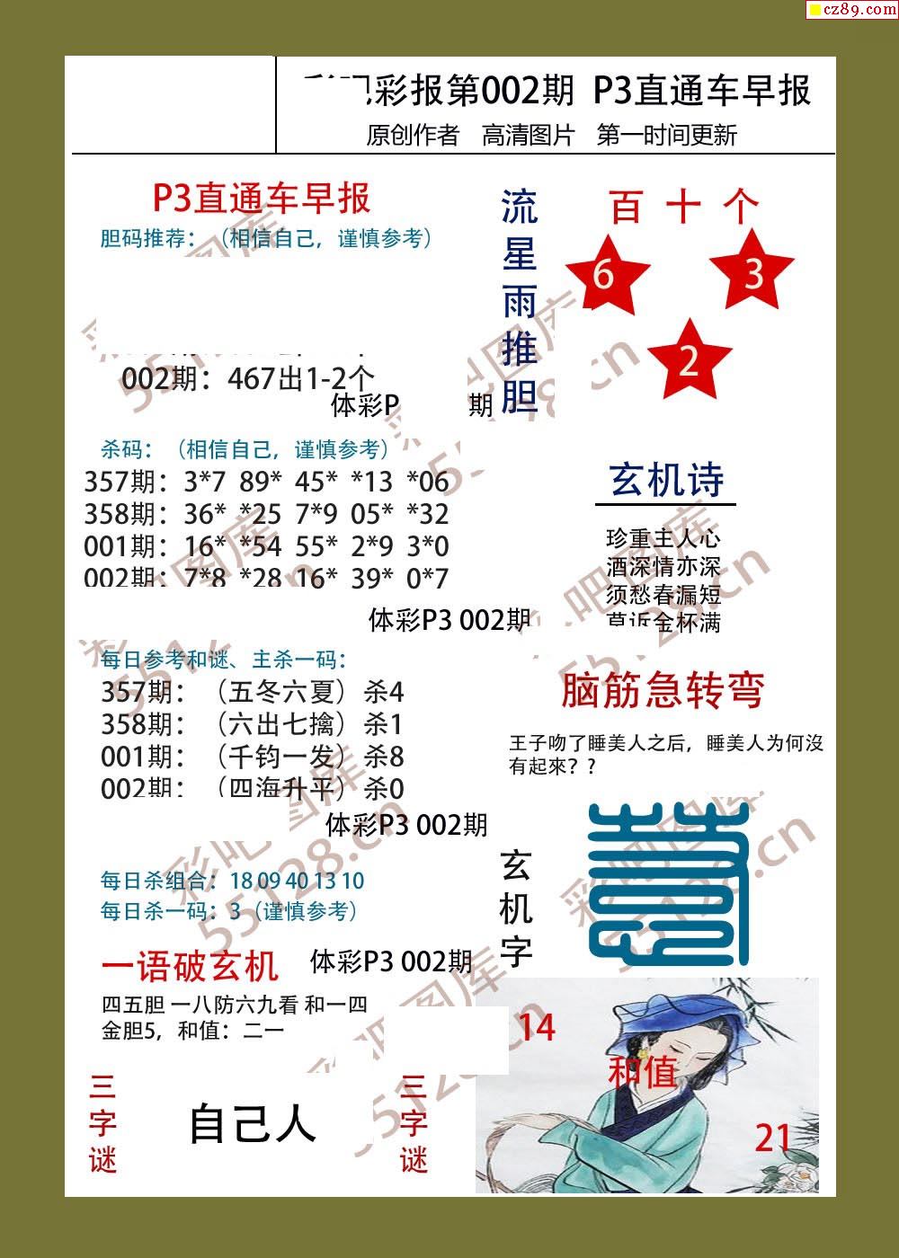 直通车早版002期体彩p3图谜