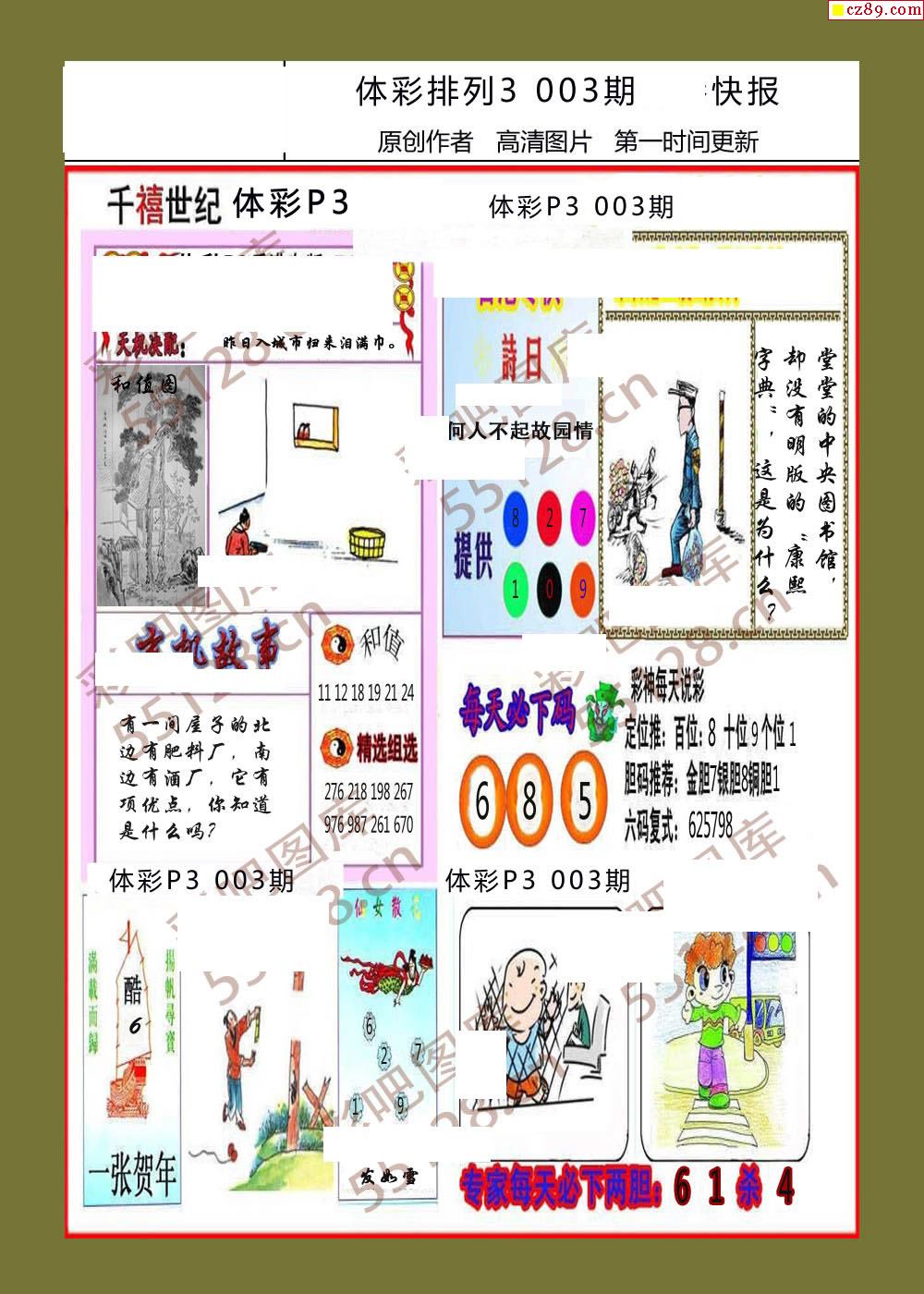 八星报喜003期体彩p3图谜