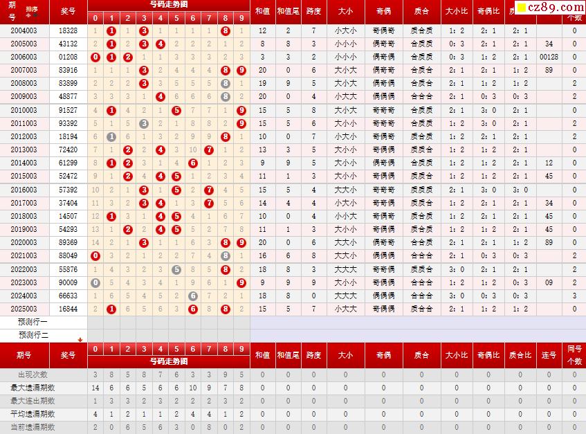 第003期体彩P3历史同期对比