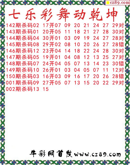 七乐彩002期 彩宝贝专家杀号码预测图表