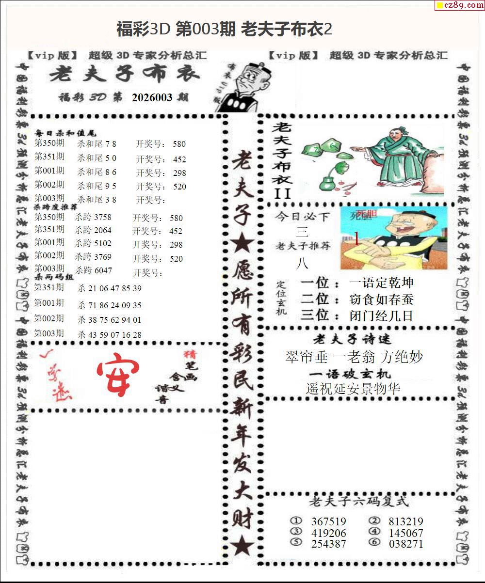 老夫子布衣2026003期3d图谜