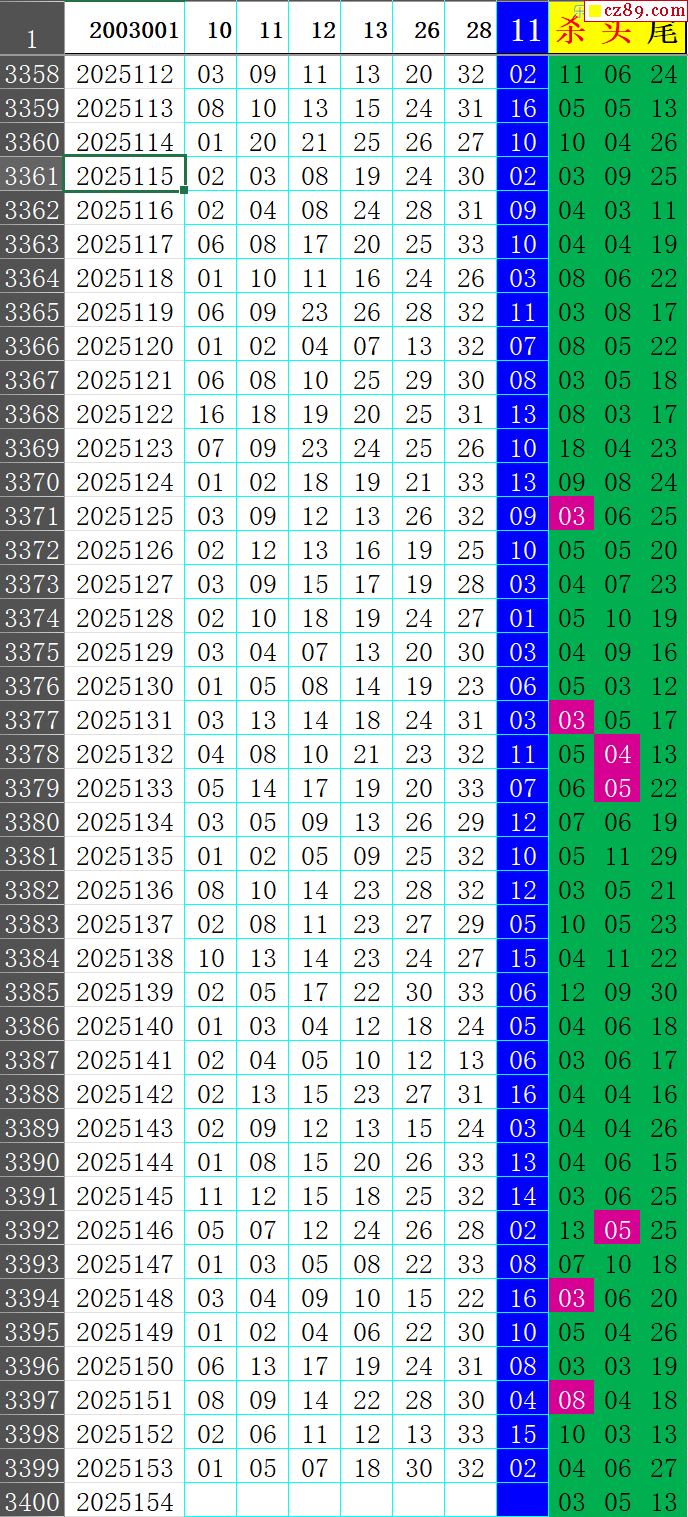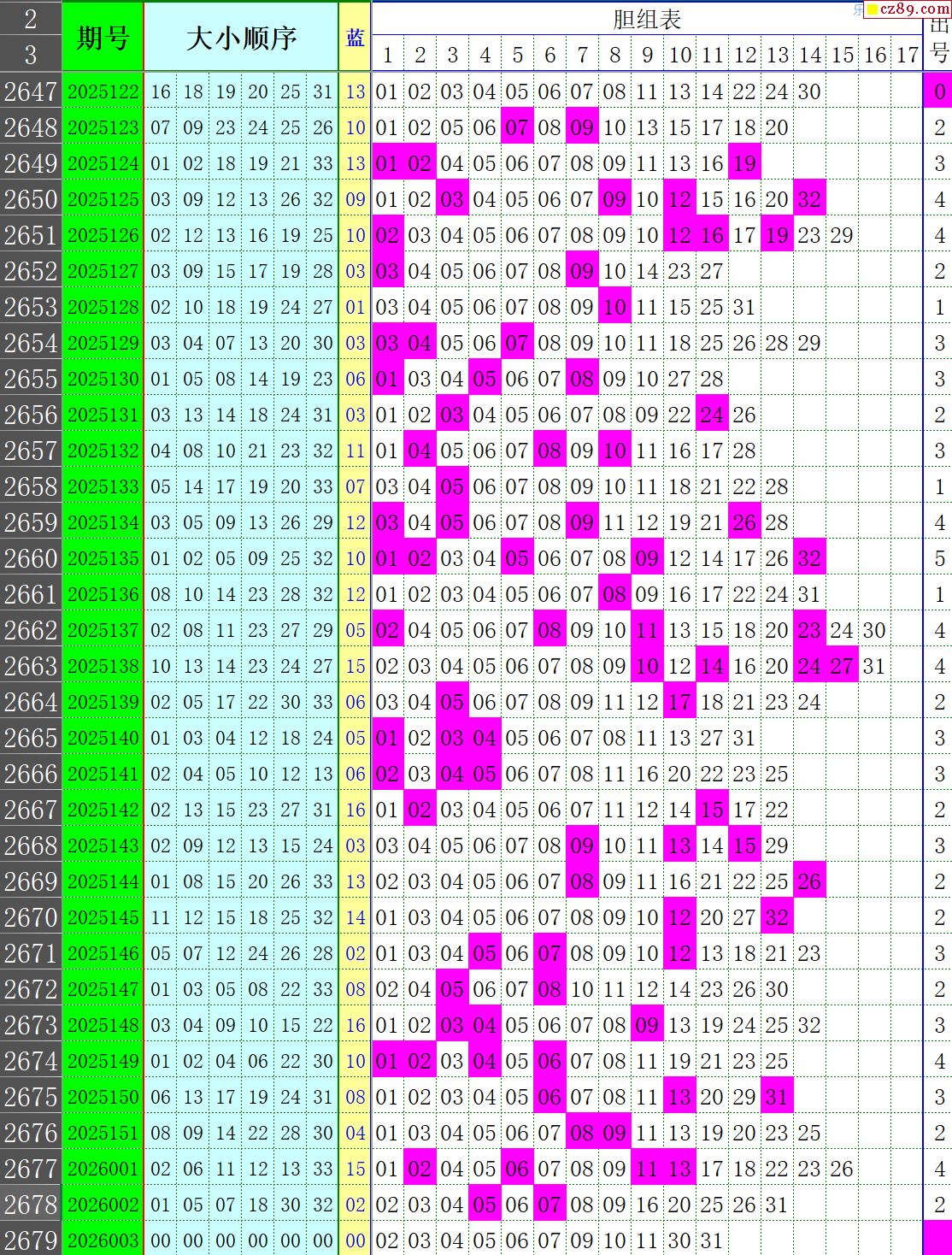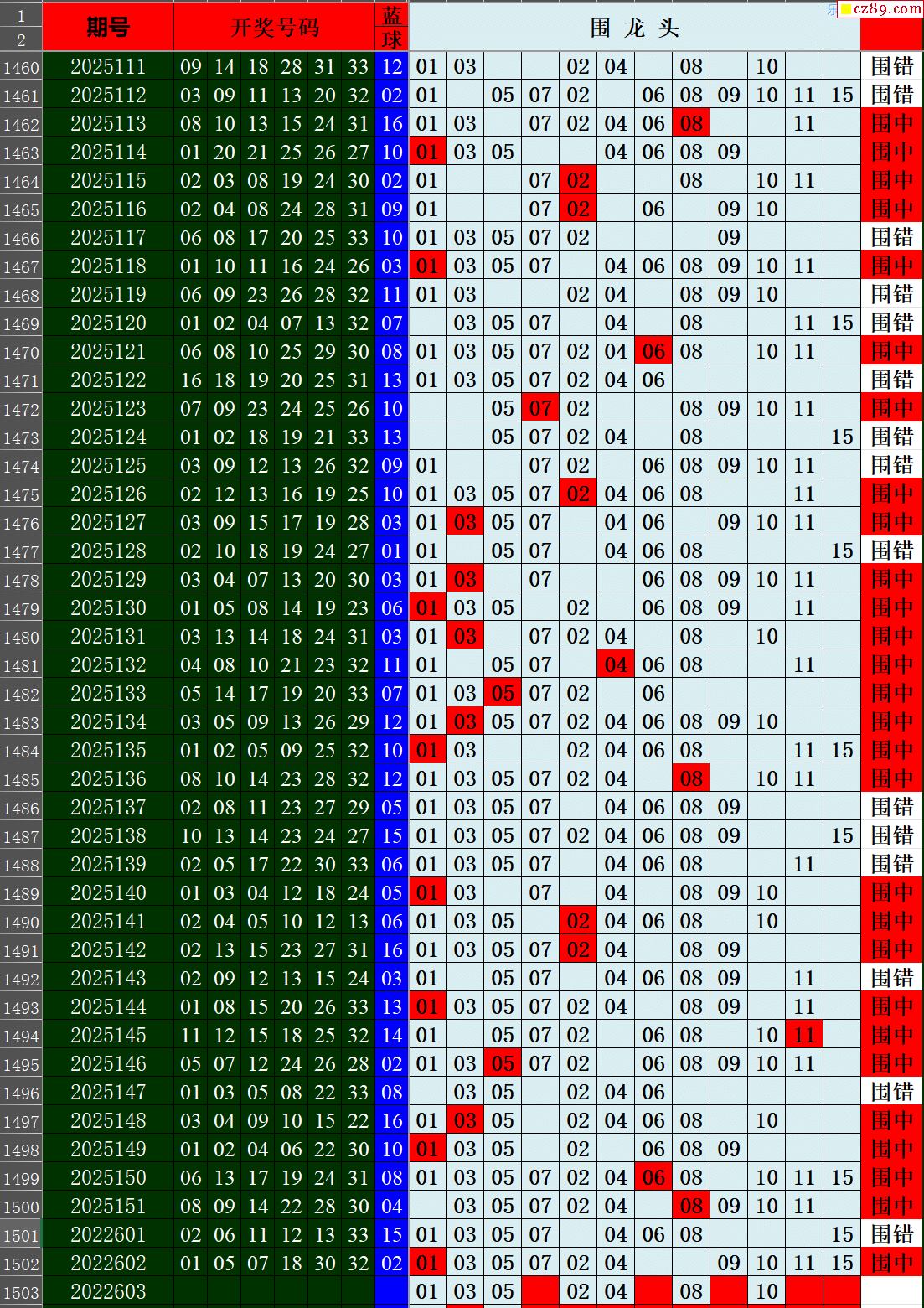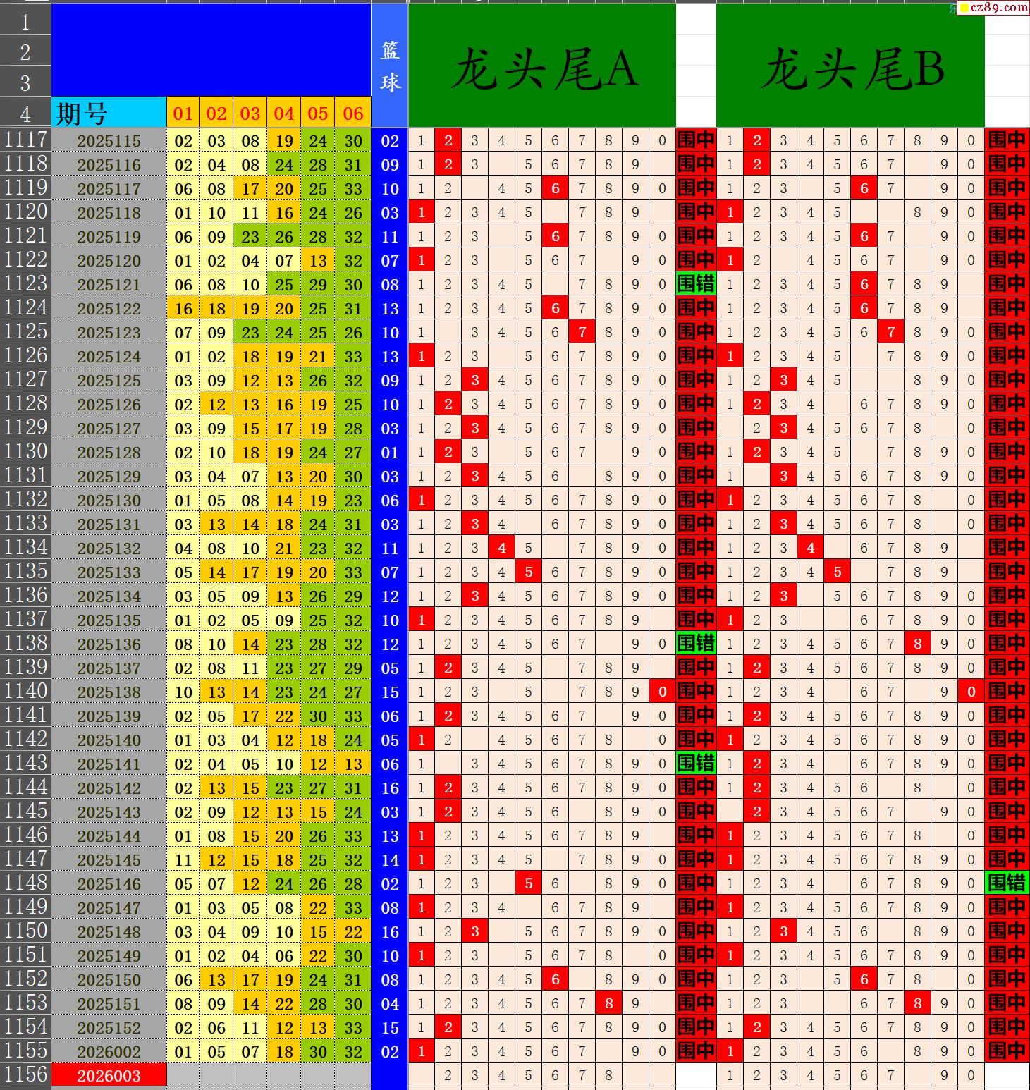 26年003期秋雨龙头凤尾走势图表