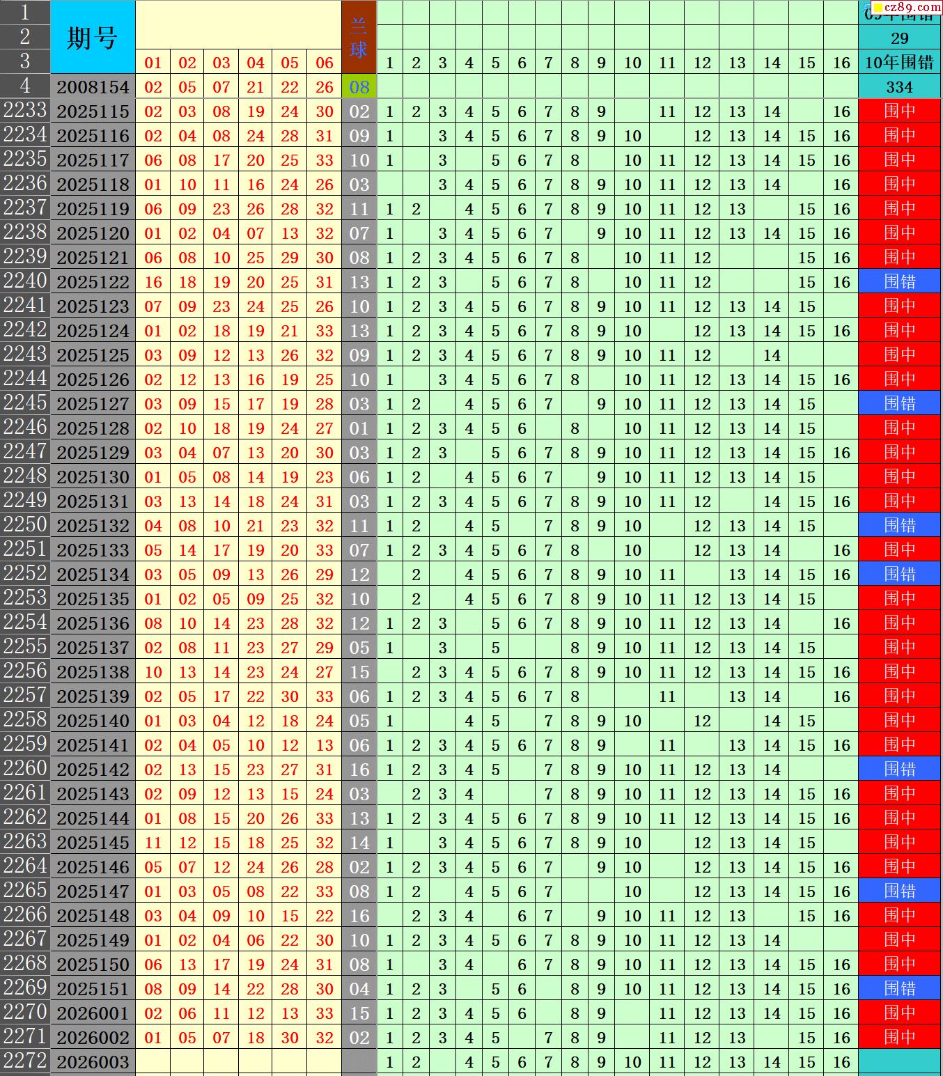 双色球历史开奖