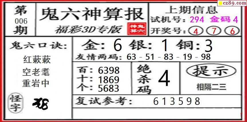 福彩3D2026007期 万家图谜三国胆拖杀图