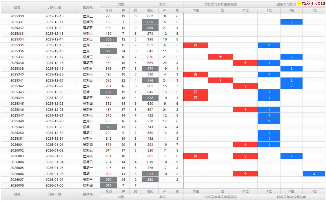 26年008期福彩3D试机号走势图表分析
