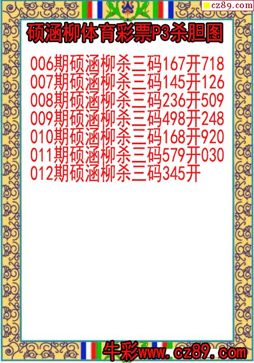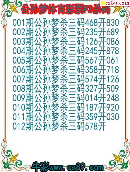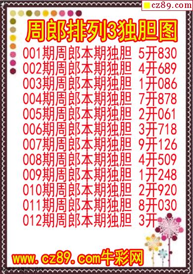 2026年012期牛彩网体彩P3画迷图谜汇总分享