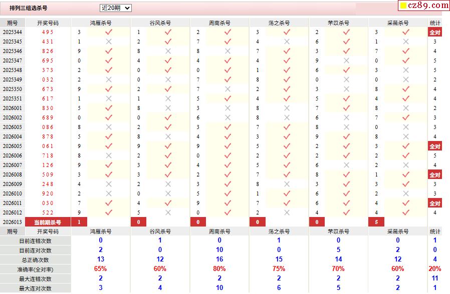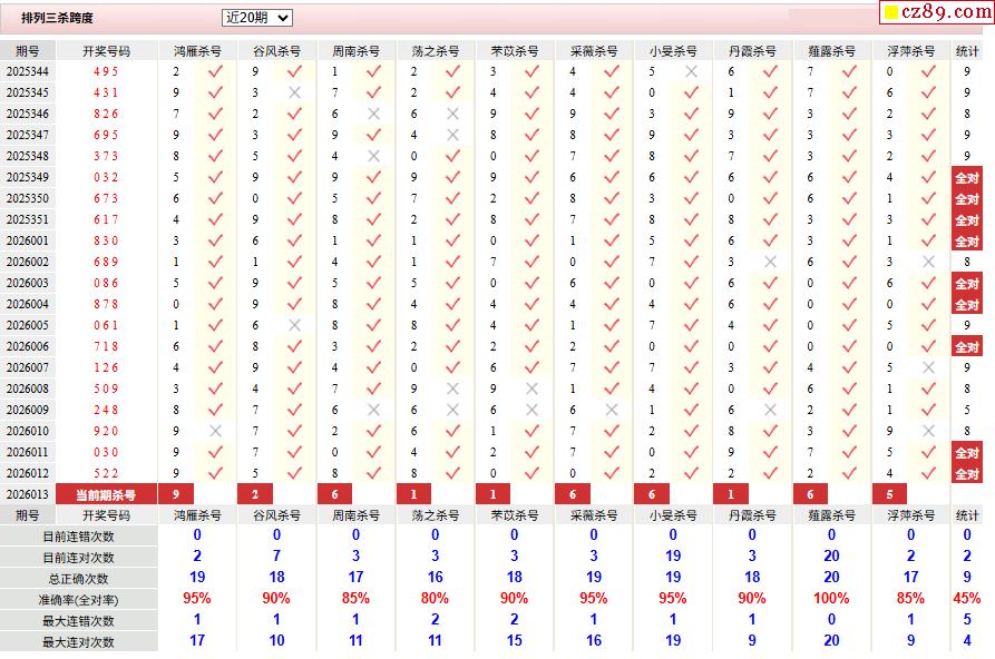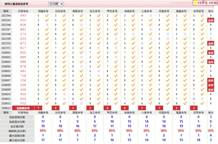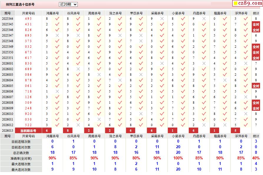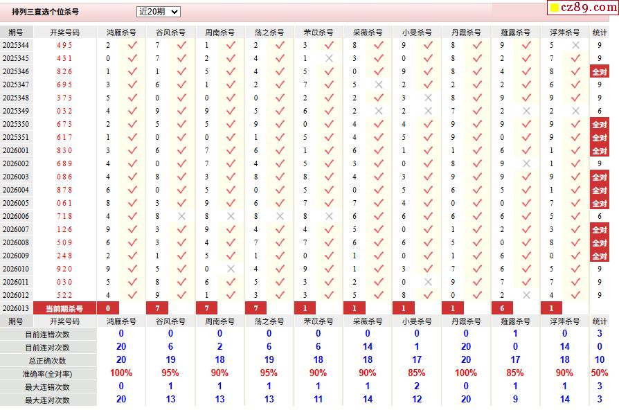 26年013期彩宝贝专家体彩P3杀号定码图表