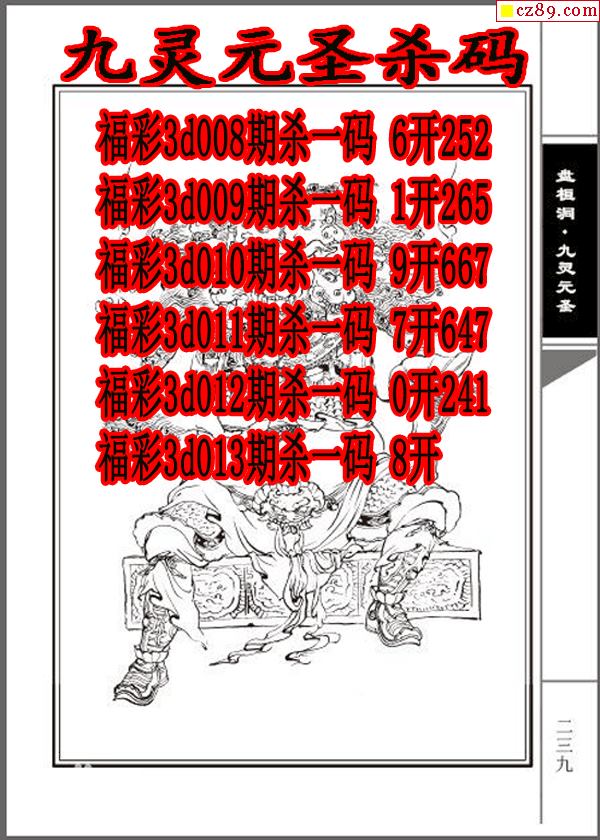 九灵元圣杀码2026013期3d图谜(原创)