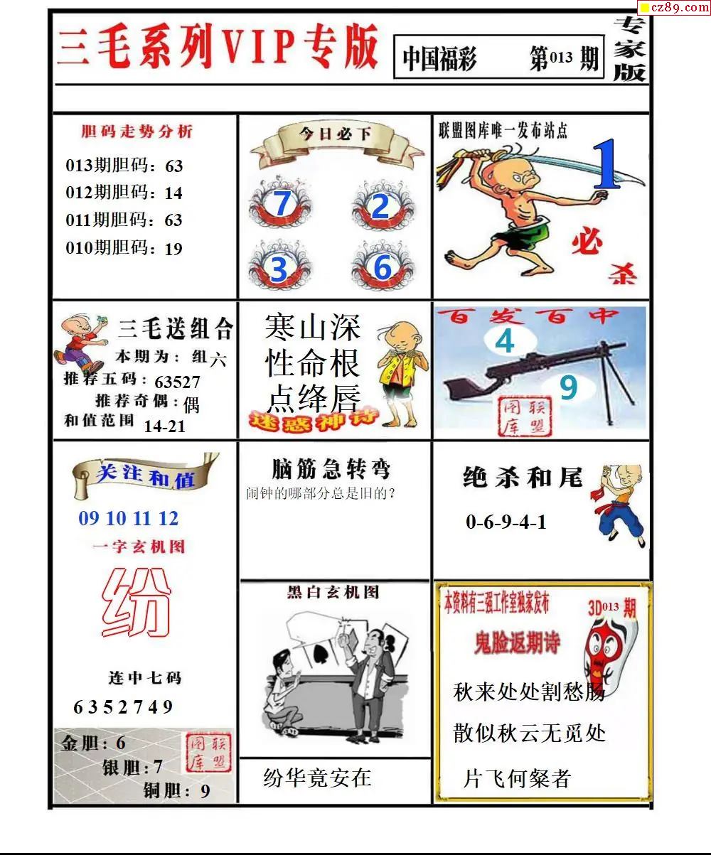 福彩3D2026013期东盛彩报+精品三毛会员版