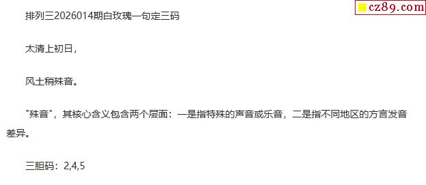 白玫瑰排三一句定三码26年014期