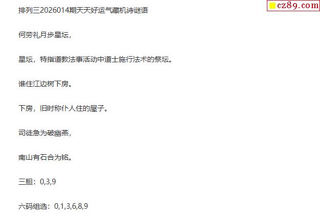 体彩P3字谜汇总2026年014期超级马克p3今日字迷总汇