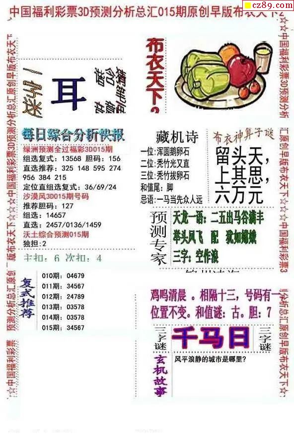 早版布衣2026015期3d图谜