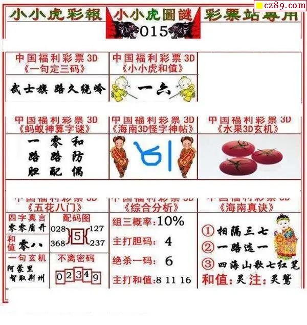 小小虎彩报2026015期3d图谜
