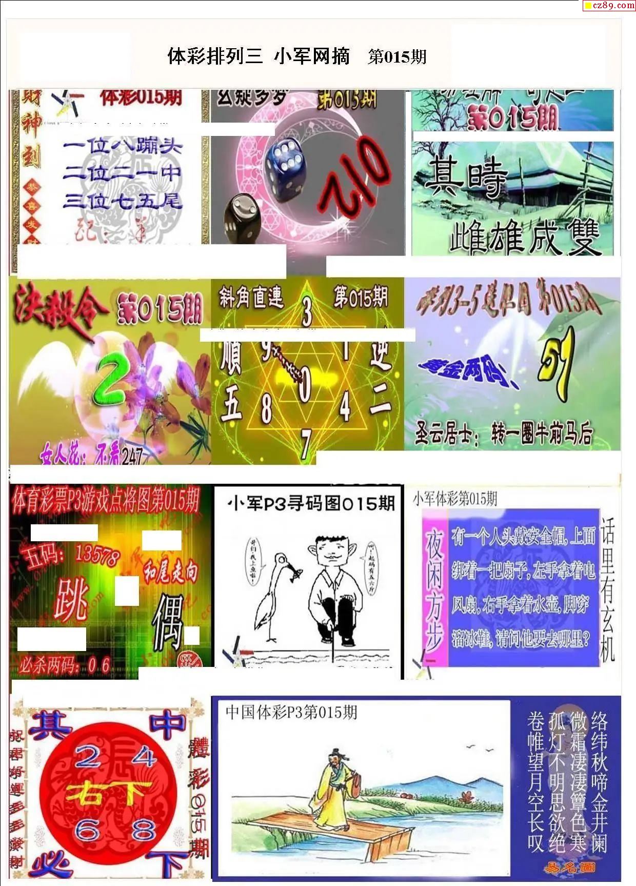 2026年015期牛彩网体彩P3画迷图谜汇总分享