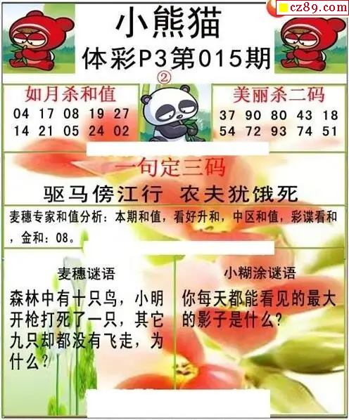小熊猫2026015期体彩P3图谜