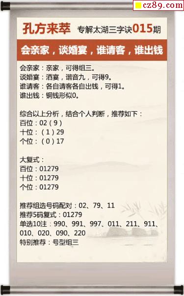 马后炮解26年015期3d太湖钓叟之 谁出钱