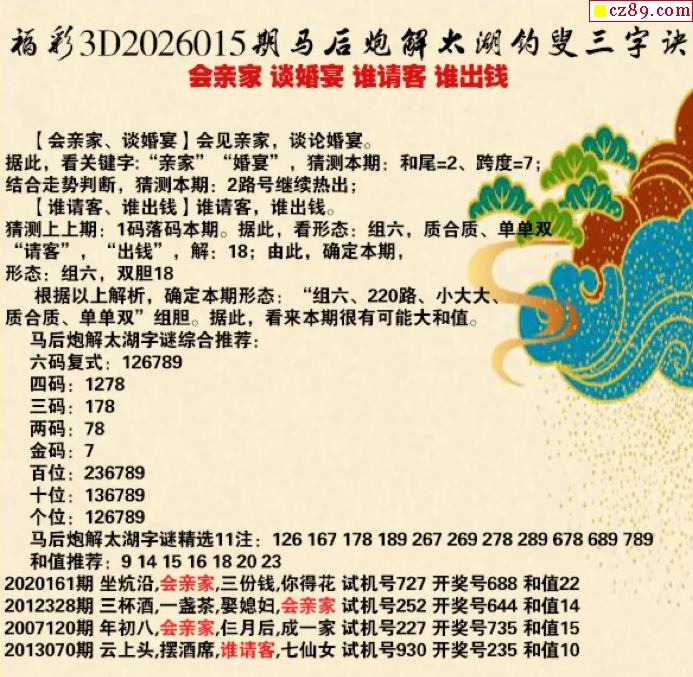 浪子陈解析26年015期3d太湖玄机 会亲家