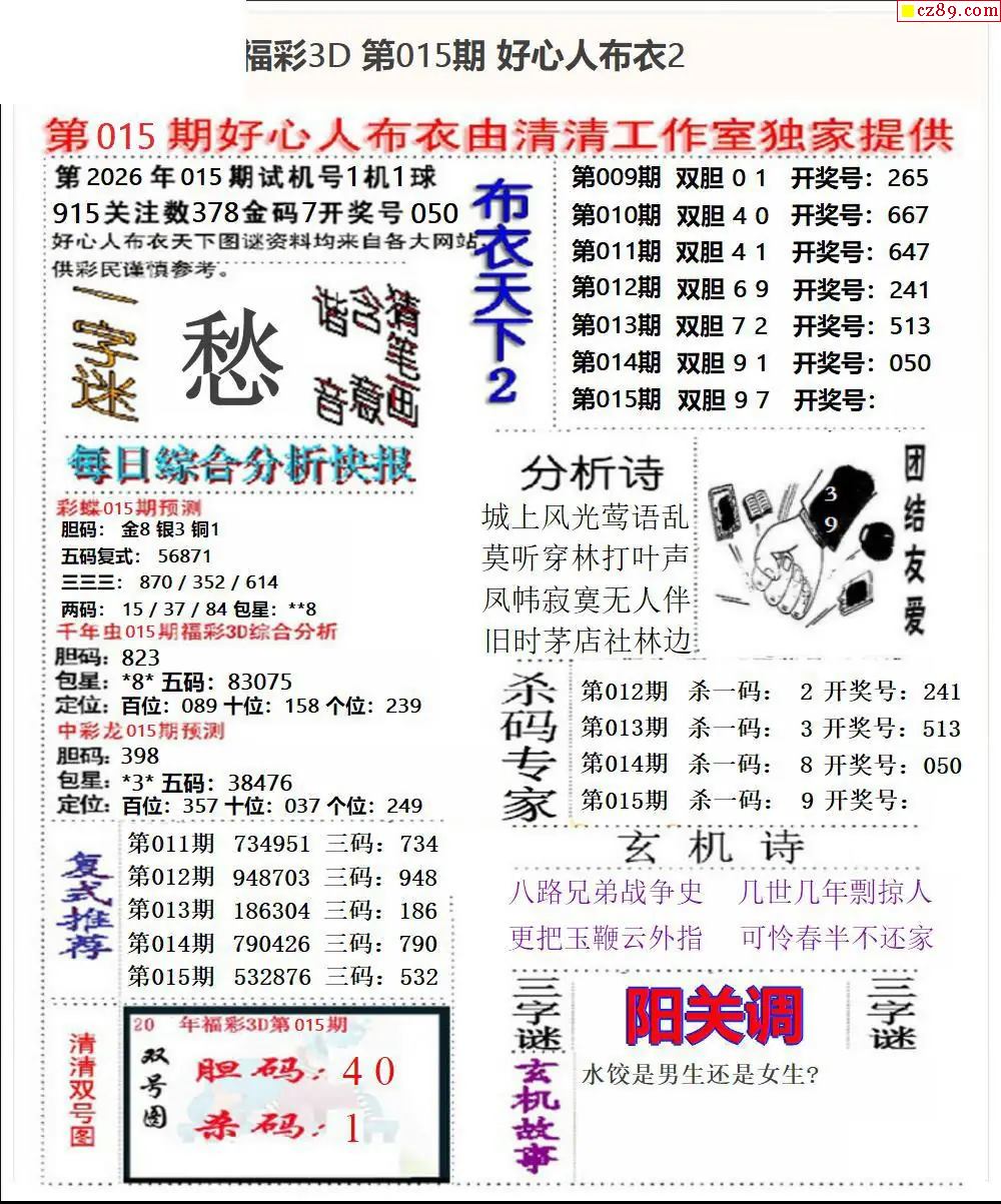 2026015期3D图谜汇总(一)