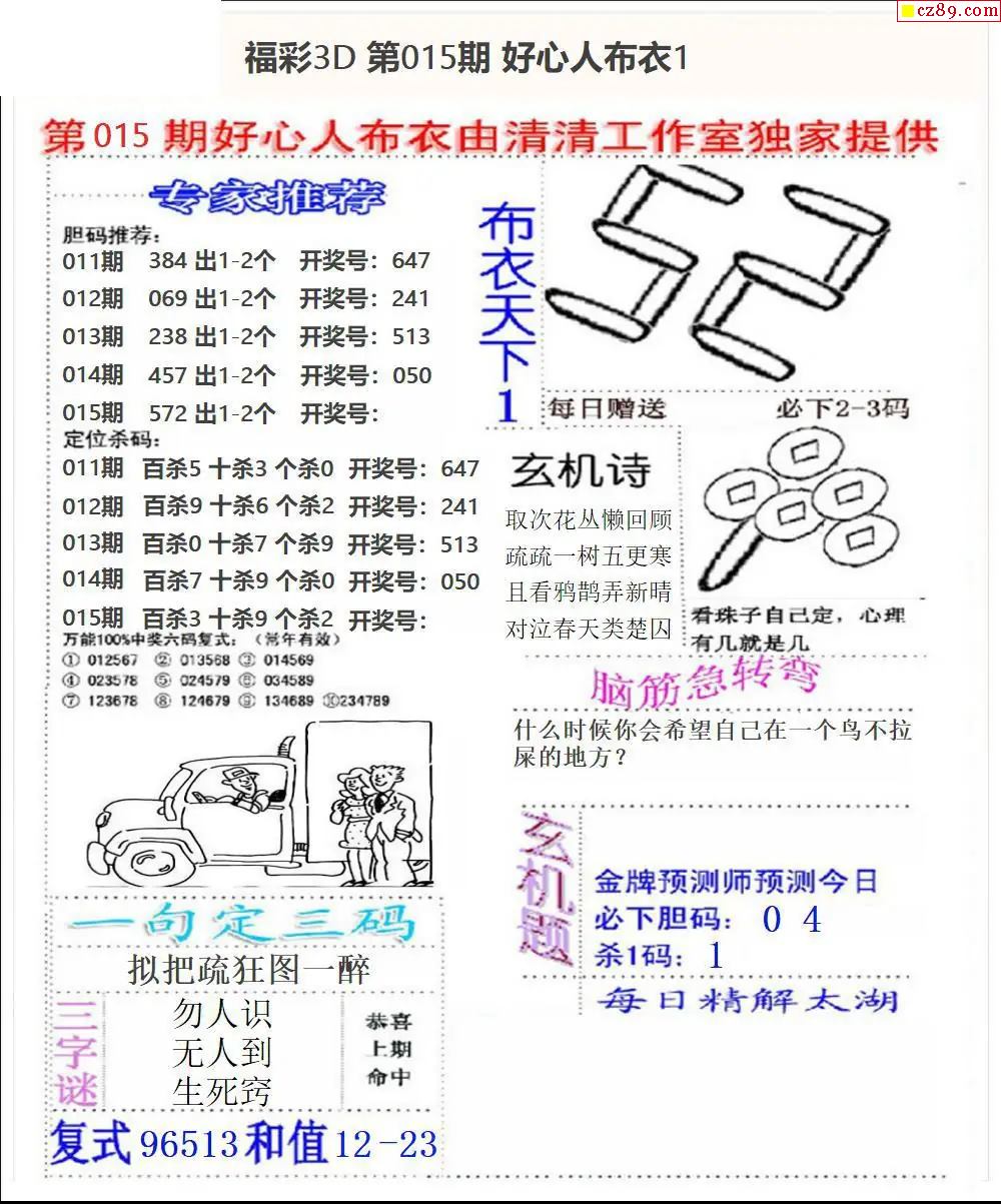 2026015期3d字谜图谜总汇