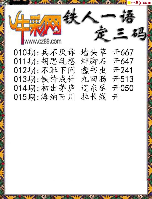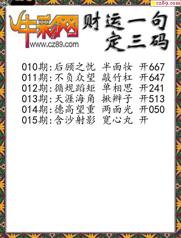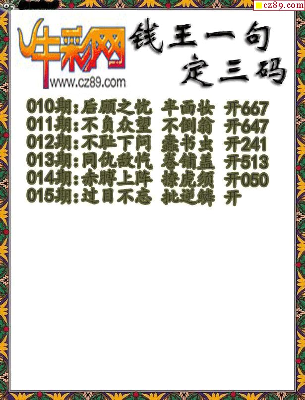 牛彩版3D字谜彩报图26年015期打印版