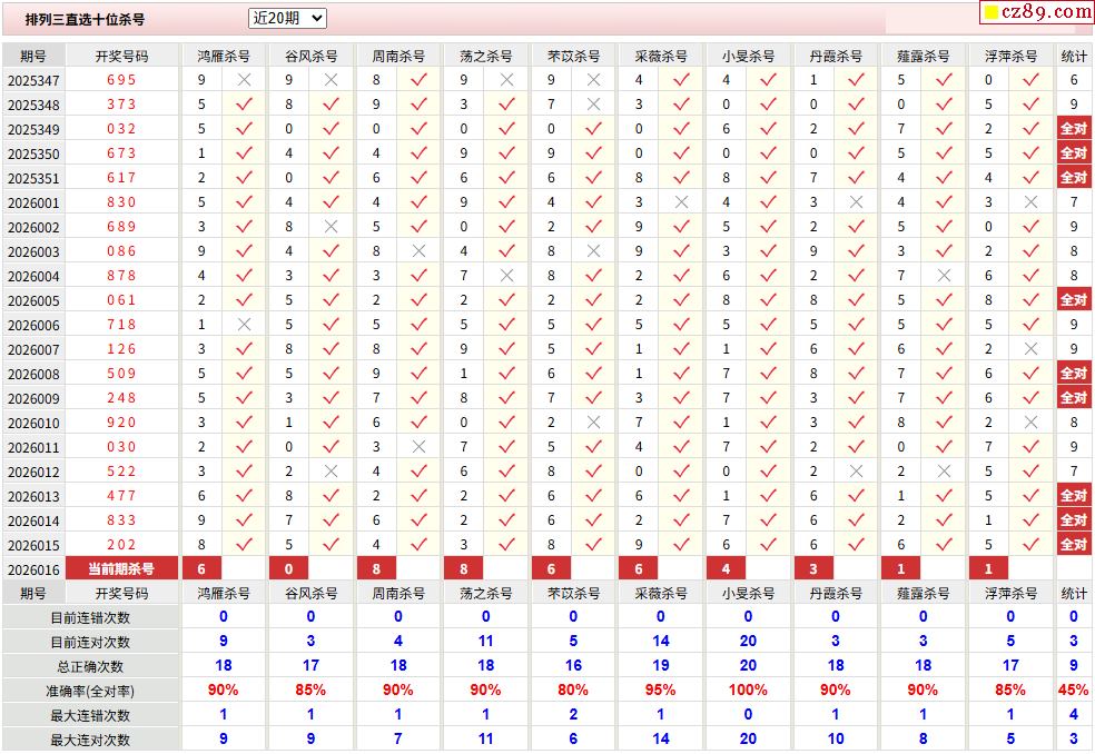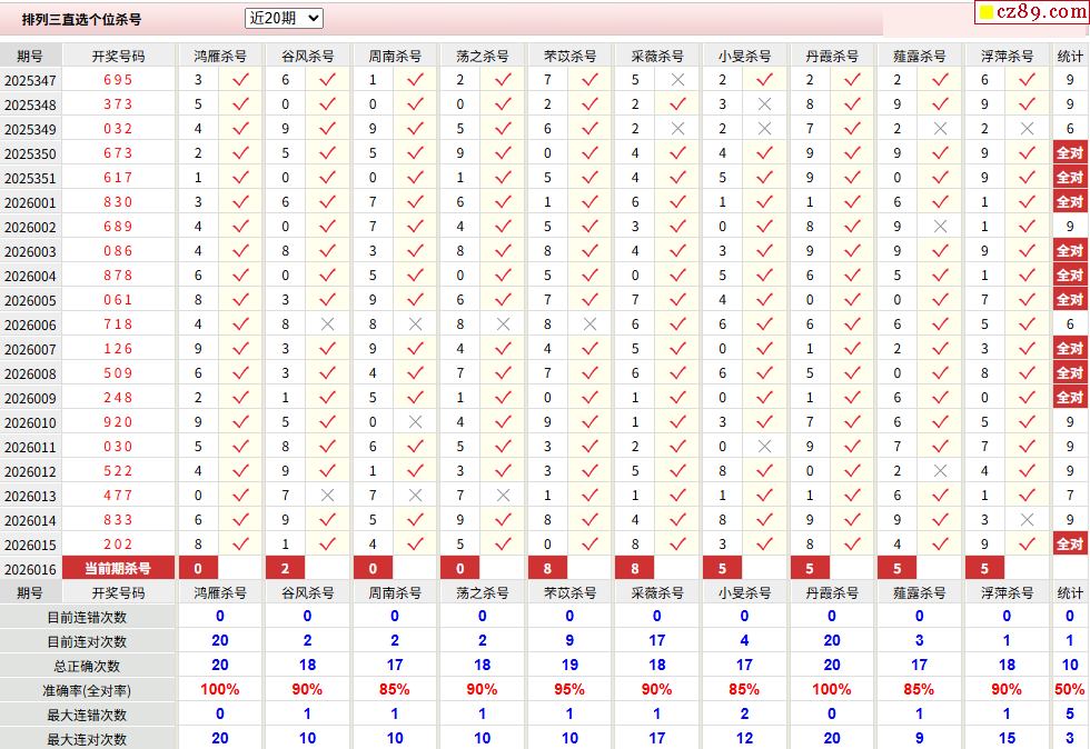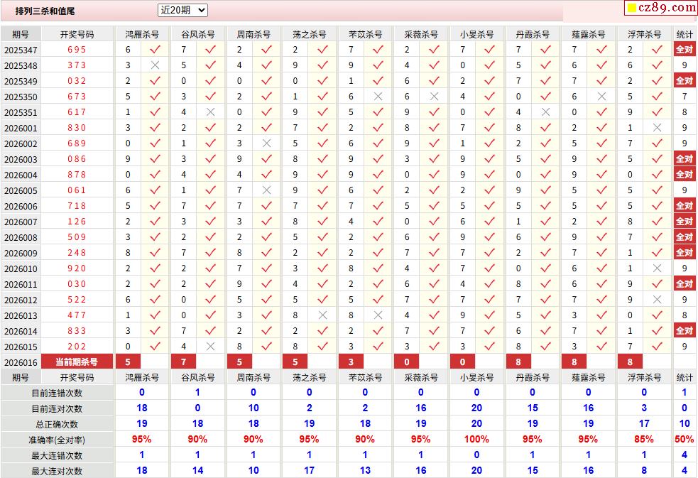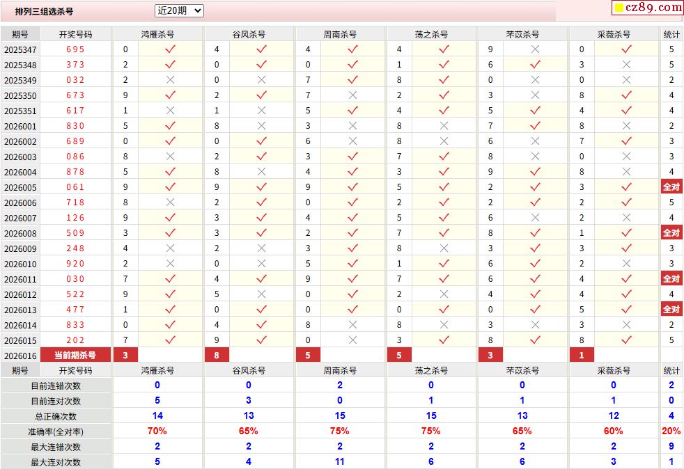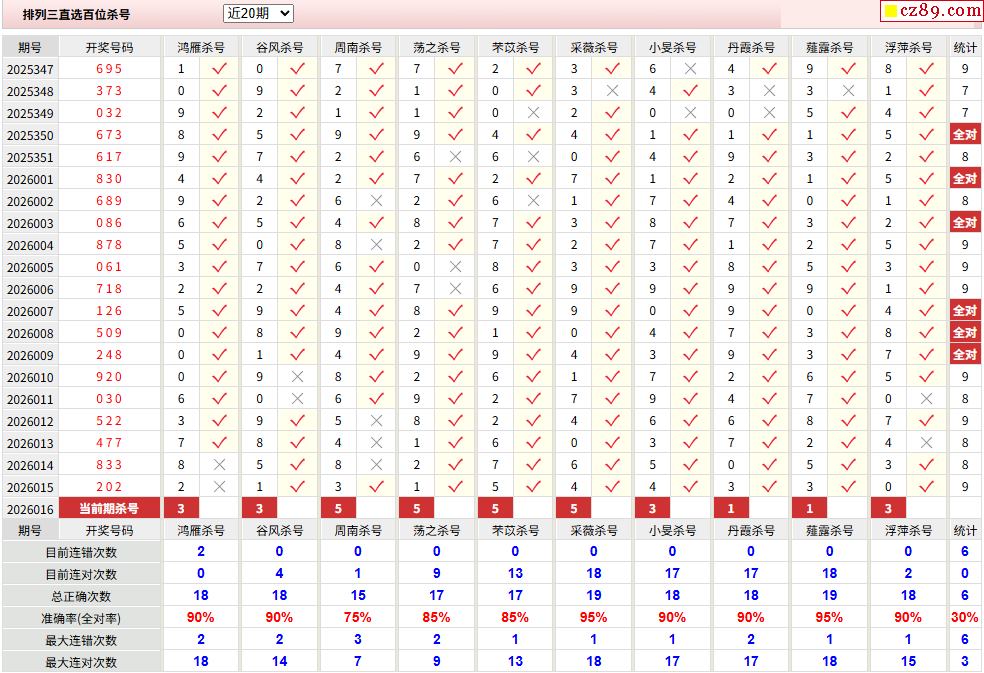 26年016期彩宝贝专家体彩P3杀号定码图表