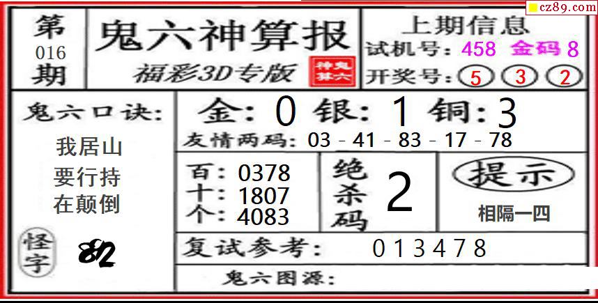 鬼六神算2026016期3d图谜