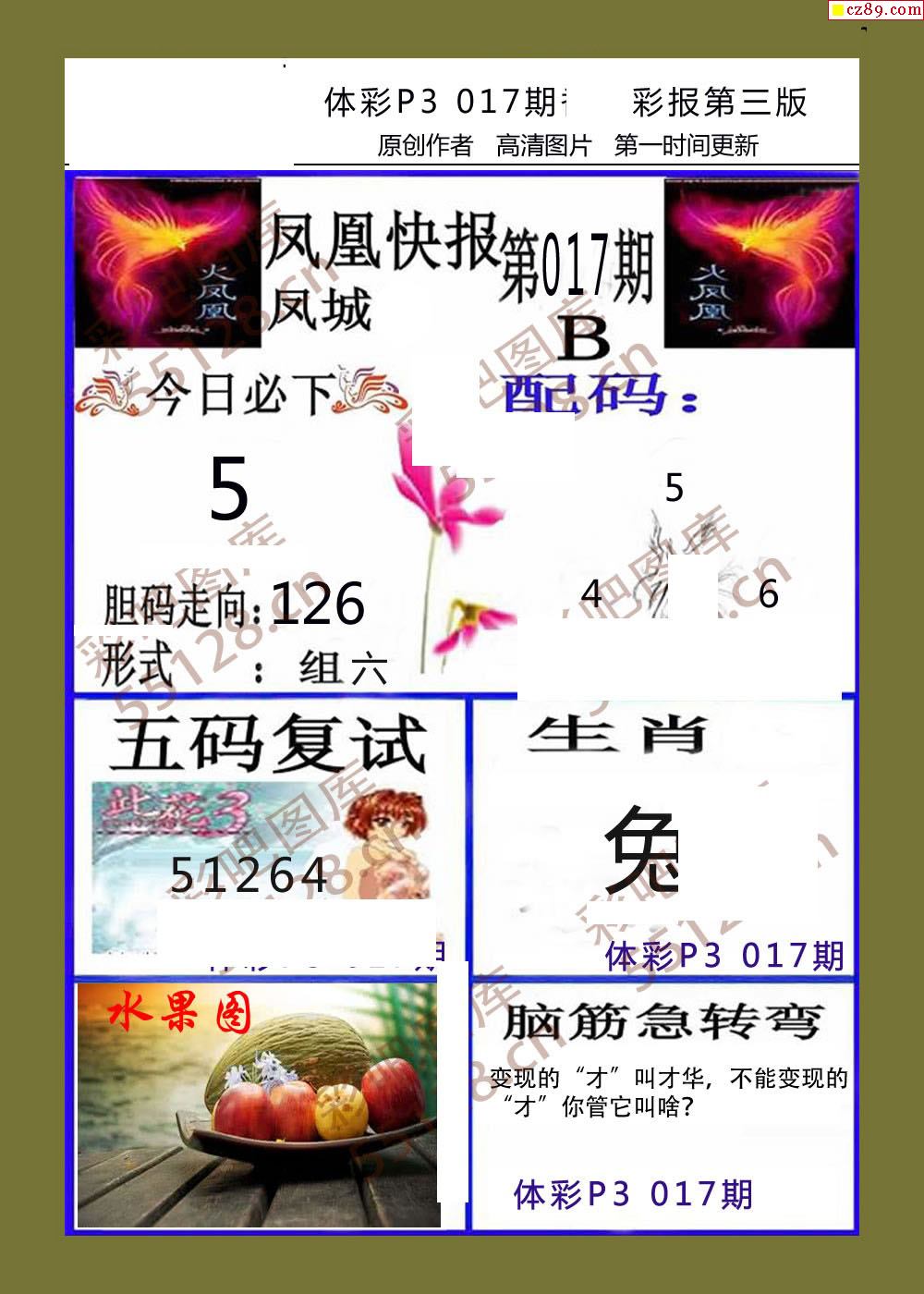 香岛彩报017期体彩p3图谜