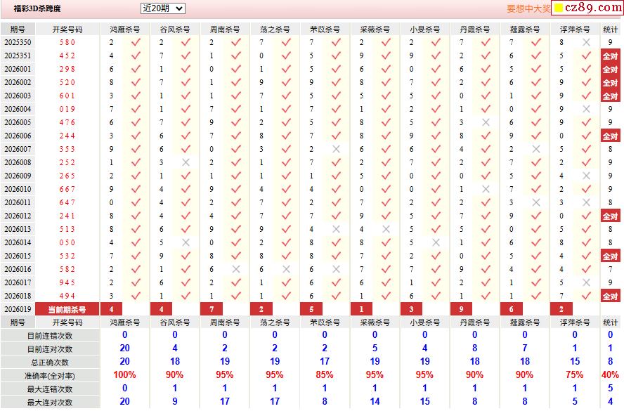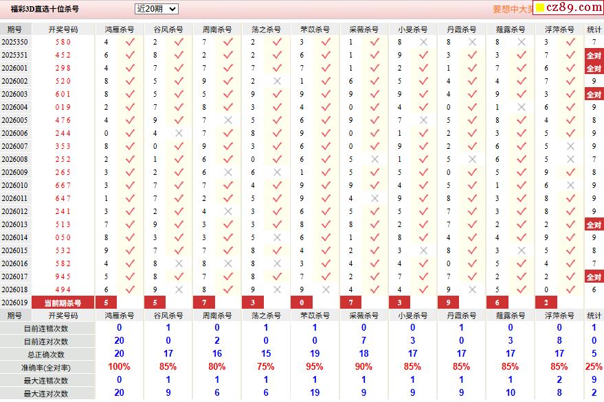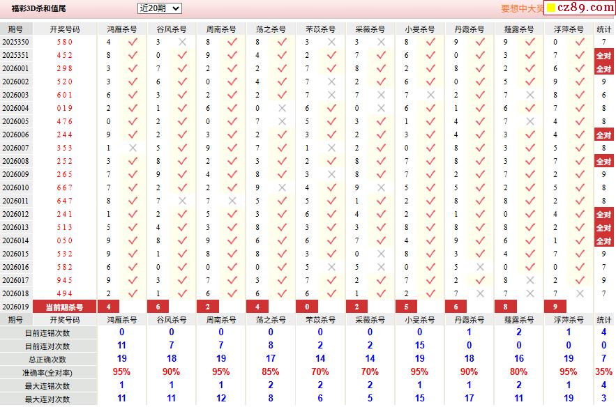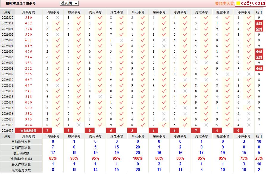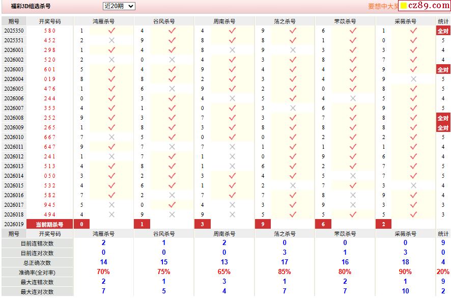 26年019期彩宝贝专家福彩3D杀号定码图表