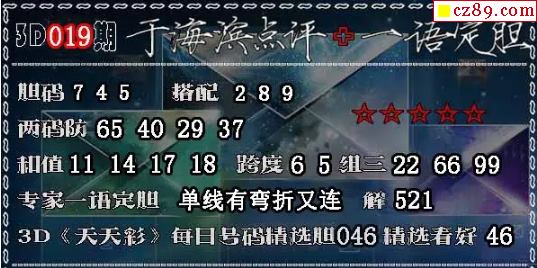 3D 《天天彩》每日号码精选胆046 精选看好46