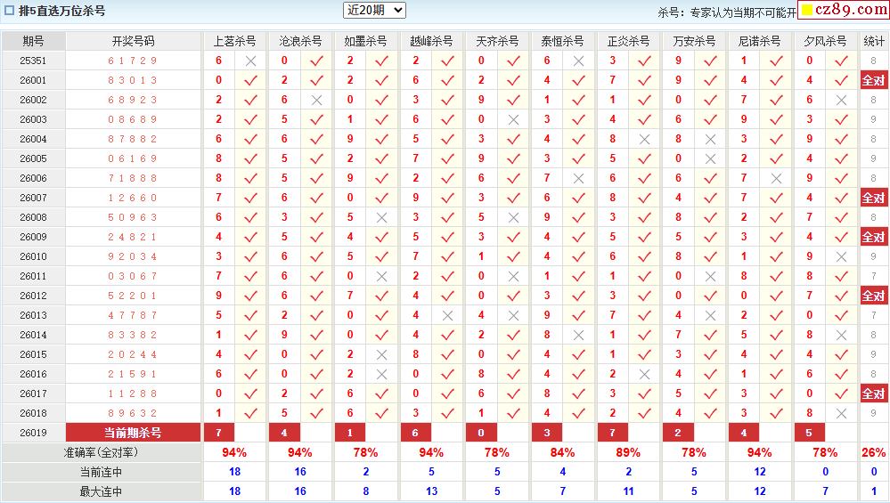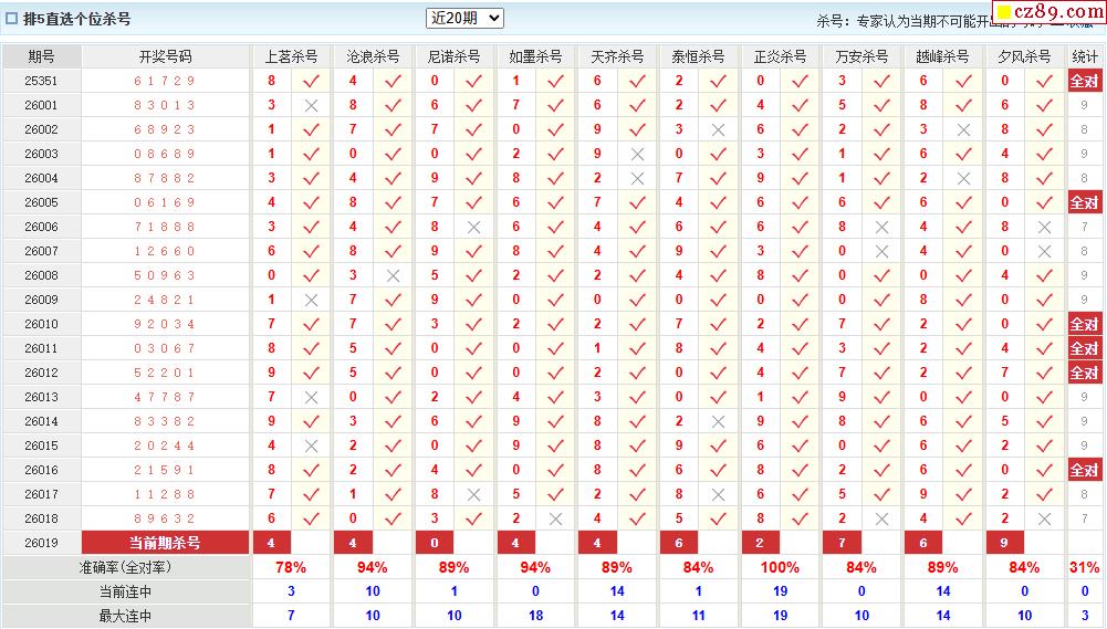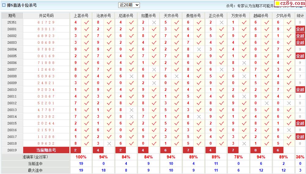 019期彩票专家体彩P5杀号推荐图表