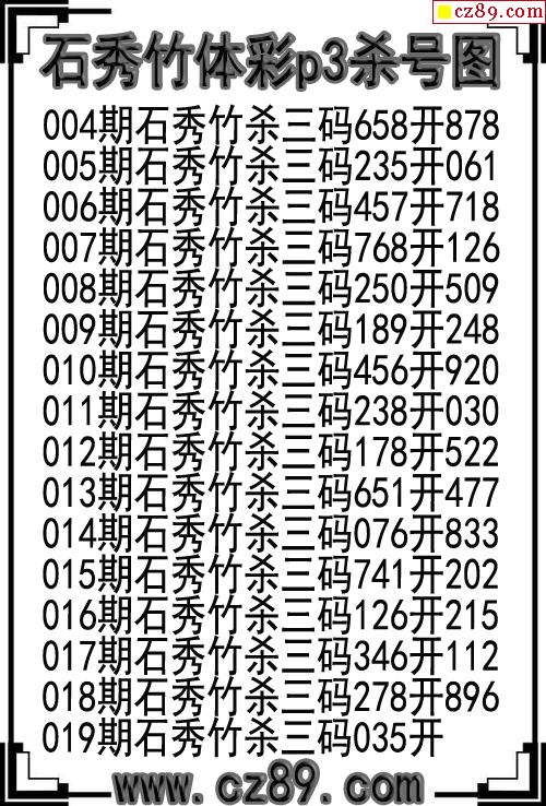 26年019期石秀竹体彩p3杀号图
