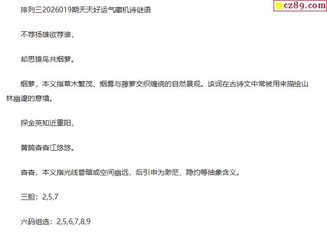 体彩P3字谜汇总2026年019期超级马克p3今...