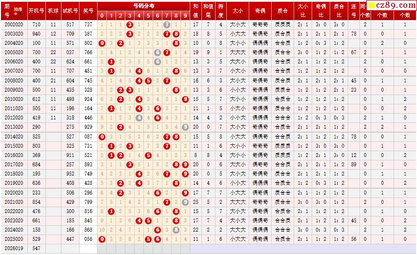 第020期福彩3D历史同期对比