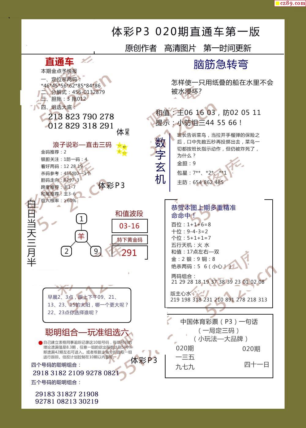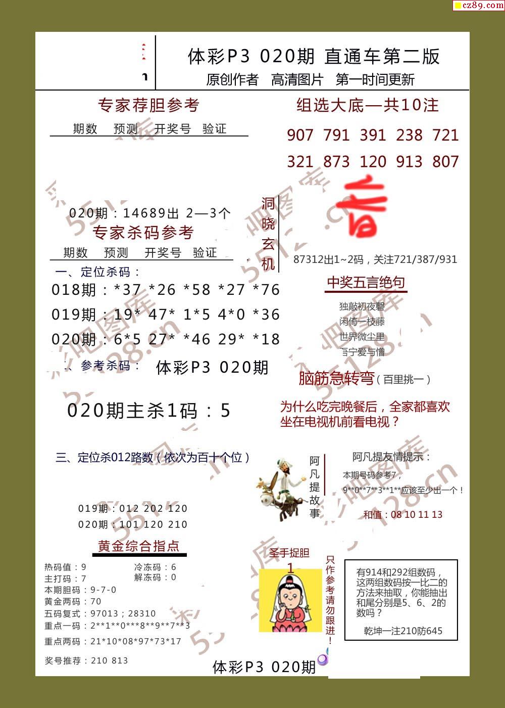 2026年020期牛彩网体彩P3画迷图谜汇总分享