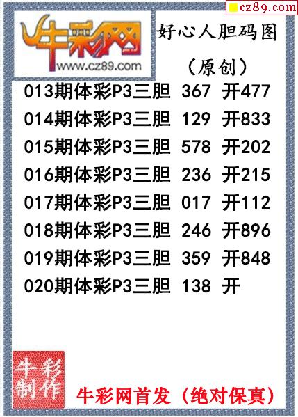 好心人送胆020期体彩p3图谜(原创)