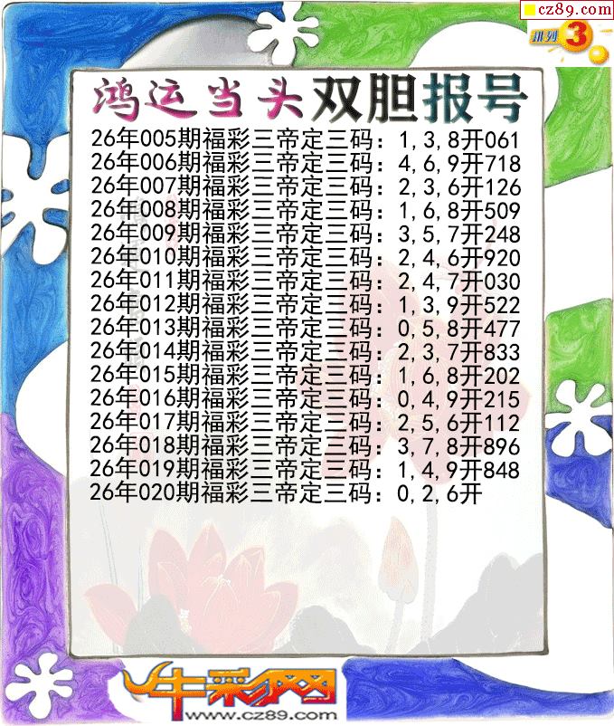 鸿运当头双胆报号020期体彩P3图谜